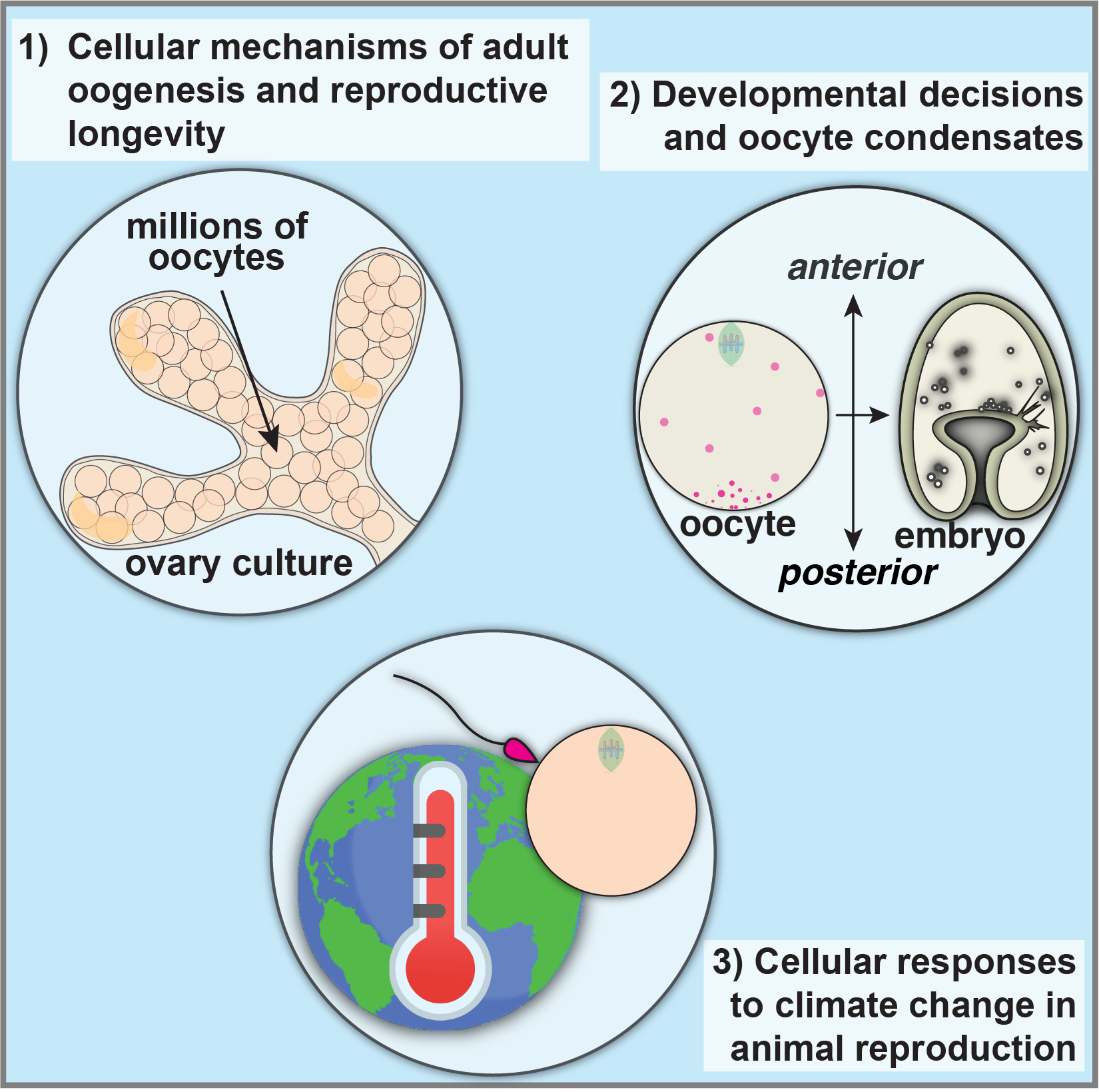 We are fascinated by cellular mechanisms driving the development of eggs.